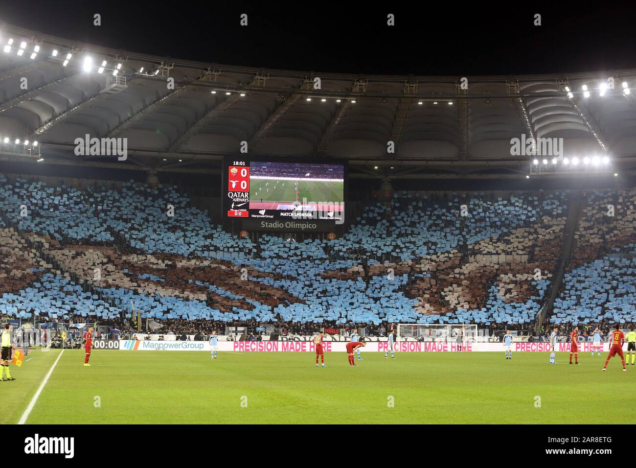 Rome Italy 26th Jan 2020 Rome Italy 26 January 2020 Choreography Of Ss Lazio Fans During The Italian Serie A Football Derby Match As Roma Vs Ss Lazio At Olympic Stadium